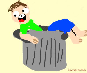 Not today, she thought, and to her own surprise, she grabbed the cane and pushed back. Caught off balance by this unprecedented response, the old man fell back and landed rear end first in the trash barrel, armpits and knees over the rim.